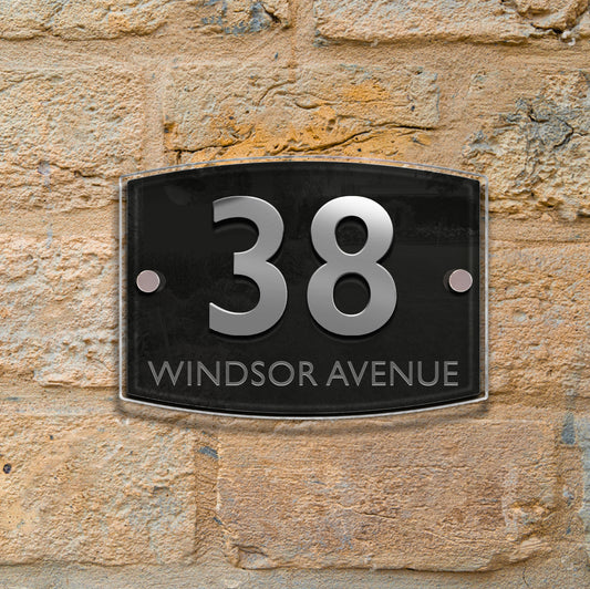 Curva Dual House Number Acrylic Sign with Stainless Steel Stand-Off Fixings