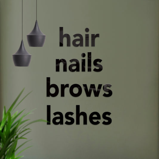 "Nails Brows Lashes" Decorative Salon Sign | 50cm Gloss Acrylic | 3D Lettering | Stand Off Fixings