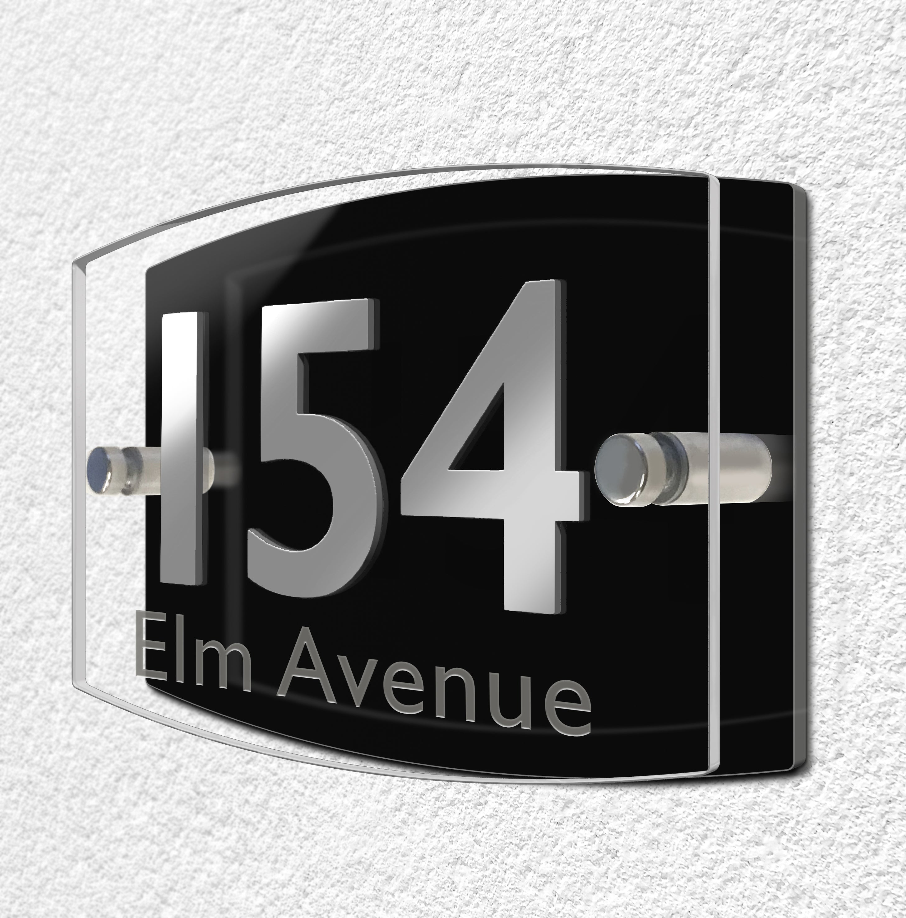 Curva Dual House Number Acrylic Sign with Stainless Steel Stand-Off Fixings