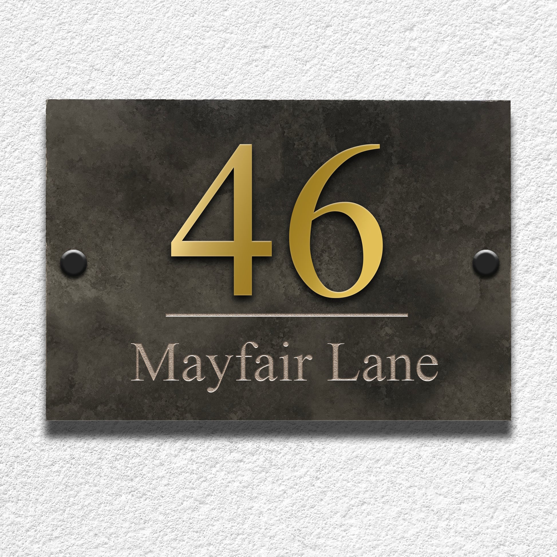 Mayfair Elite Honed Slate Sign with Raised Metallic Numbers