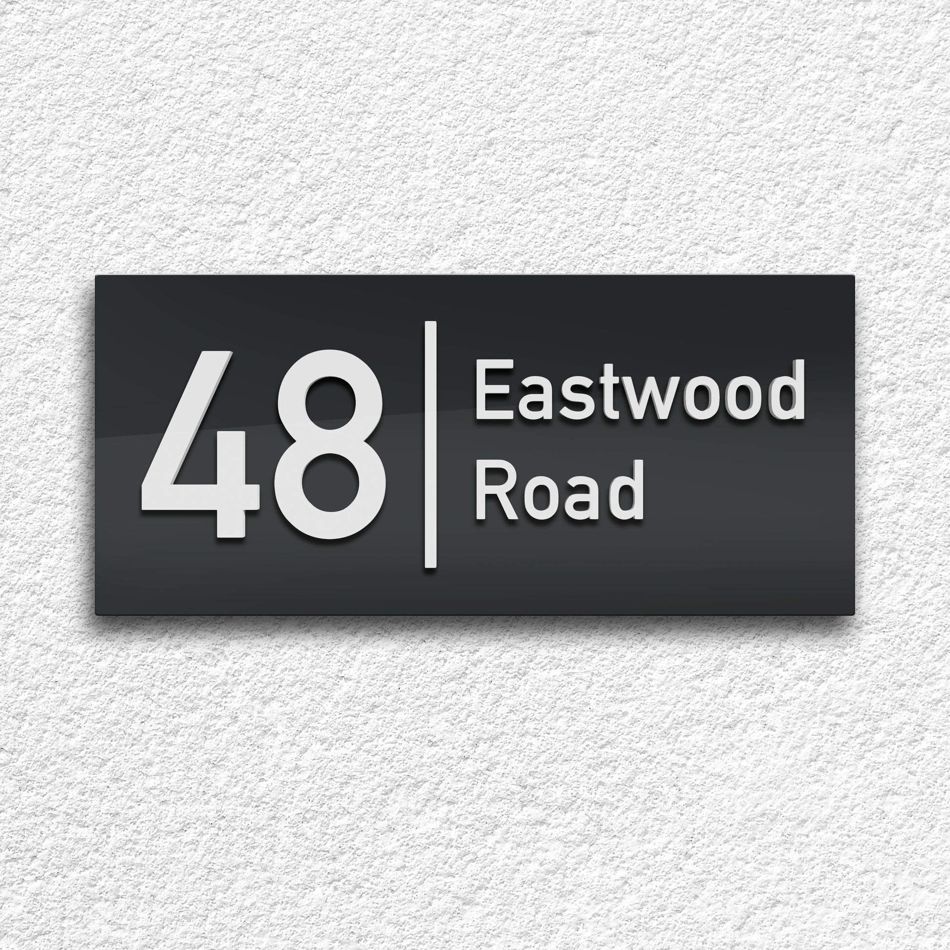 These super stylish house signs are really popular and are made from High Gloss Acrylic and proudly display your house number and street name. The plaque is high gloss acrylic and the lettering is laser-cut from white acrylic and hand assembled by professional craftspeople.