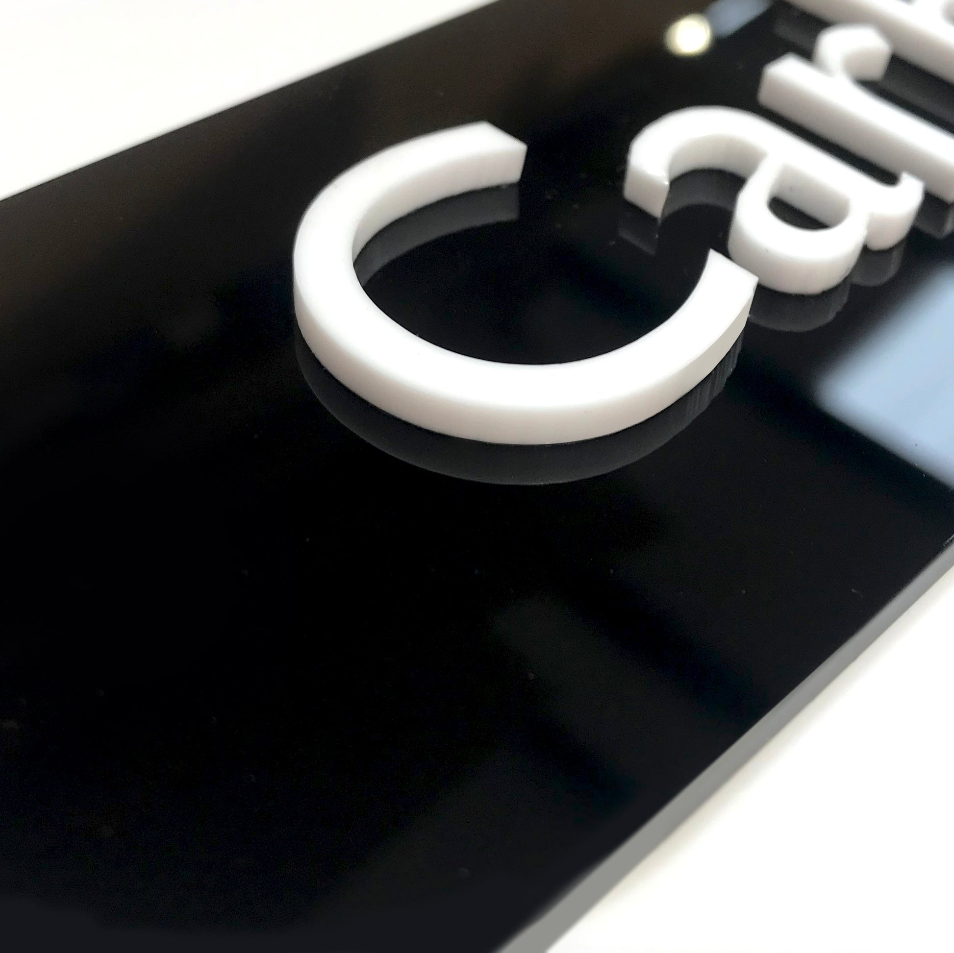 Our pointer signs are made from 3mm acrylic with a sleek gloss finish, your text is laser cut from a separate sheet of material and bonded to the sign surface using professional sign-making techniques.